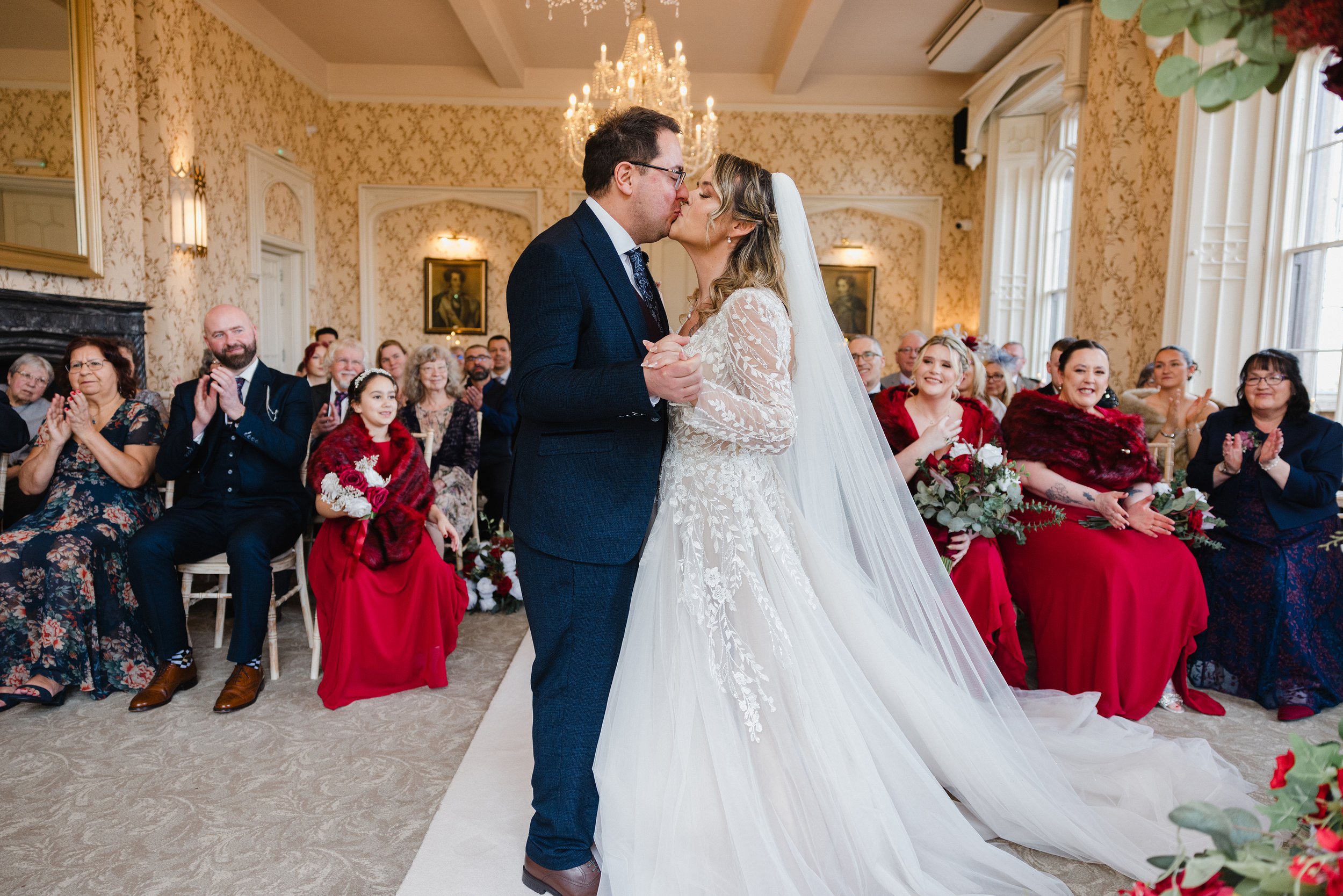 The evening continued inside with food, laughter and plenty of dancing. There was no pressure for formalities, just a relaxed celebration surrounded by the people who mattered most. Being married on Valentine’s Day added a quiet romantic charm to the whole occasion — not in an over‑the‑top way, but in those small, meaningful moments between Jade and Gus that stood out throughout the day. It was a perfect example of how warm, intimate and personal a February wedding at Rowton Castle can be.
